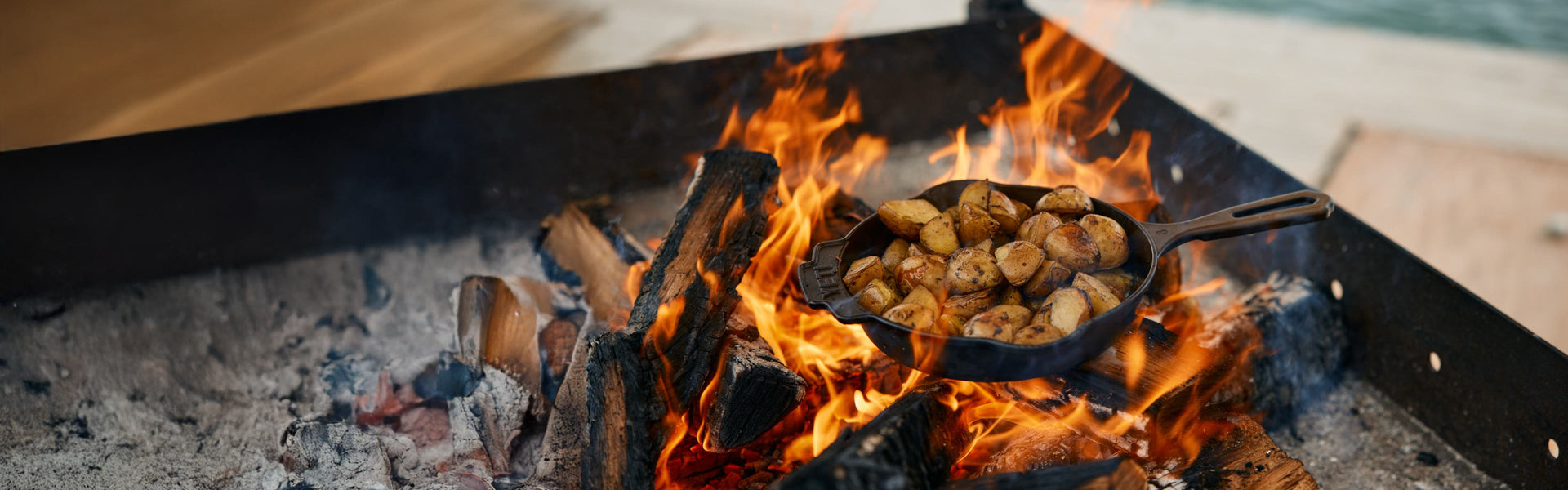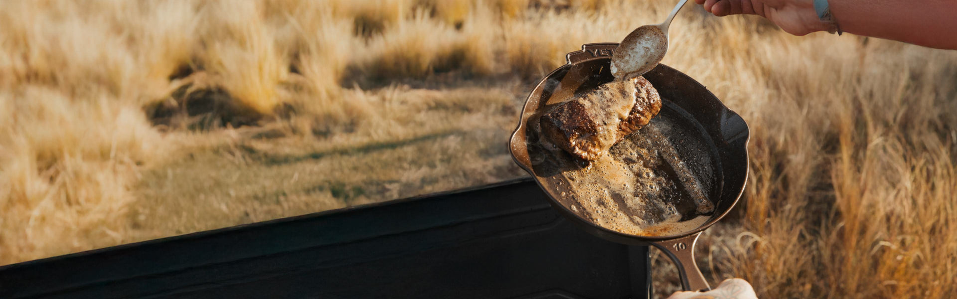 While your pan comes pre-seasoned, it is not yet fully non-stick and will become more non-stick with time. We recommend cooking with anything that fills the pan, uses oil or fat, and gets cooked at a consistently high heat for your first few uses. Check out our recipes for inspiration. For more information on care and use, please visit our Skillet FAQ page.