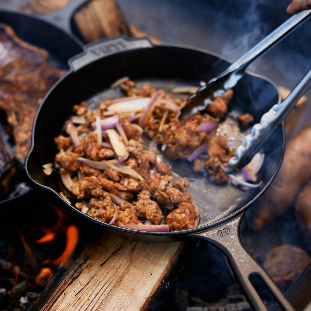 We've carefully cast the ultimate skillet for a couple of hungry campers. Perfect for searing ahi tuna or sautéing locally foraged mushroom, this uniquely smooth 10-inch pan works just as well in the wild as it does on your home burner. It's a blank canvas for generations of live feasting and an heirloom piece that will never stop impressing.