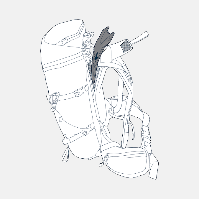 Return the yoke adjuster to the pocket it came from. It doubles as the upper framing of the pack.